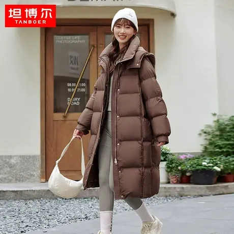 坦博尔2025冬季新款羽绒服女长款可脱卸帽加厚过膝保暖宽松外套